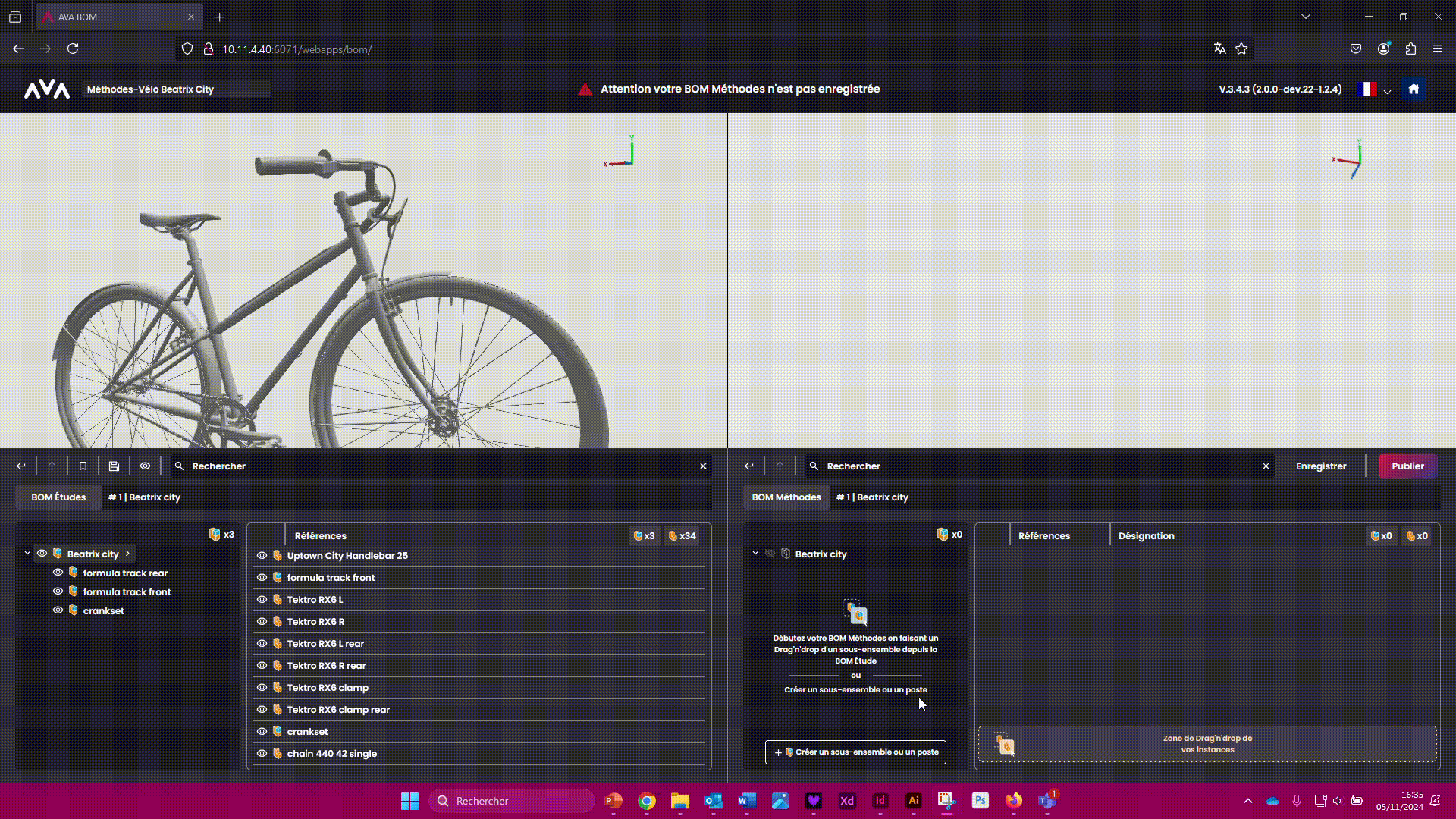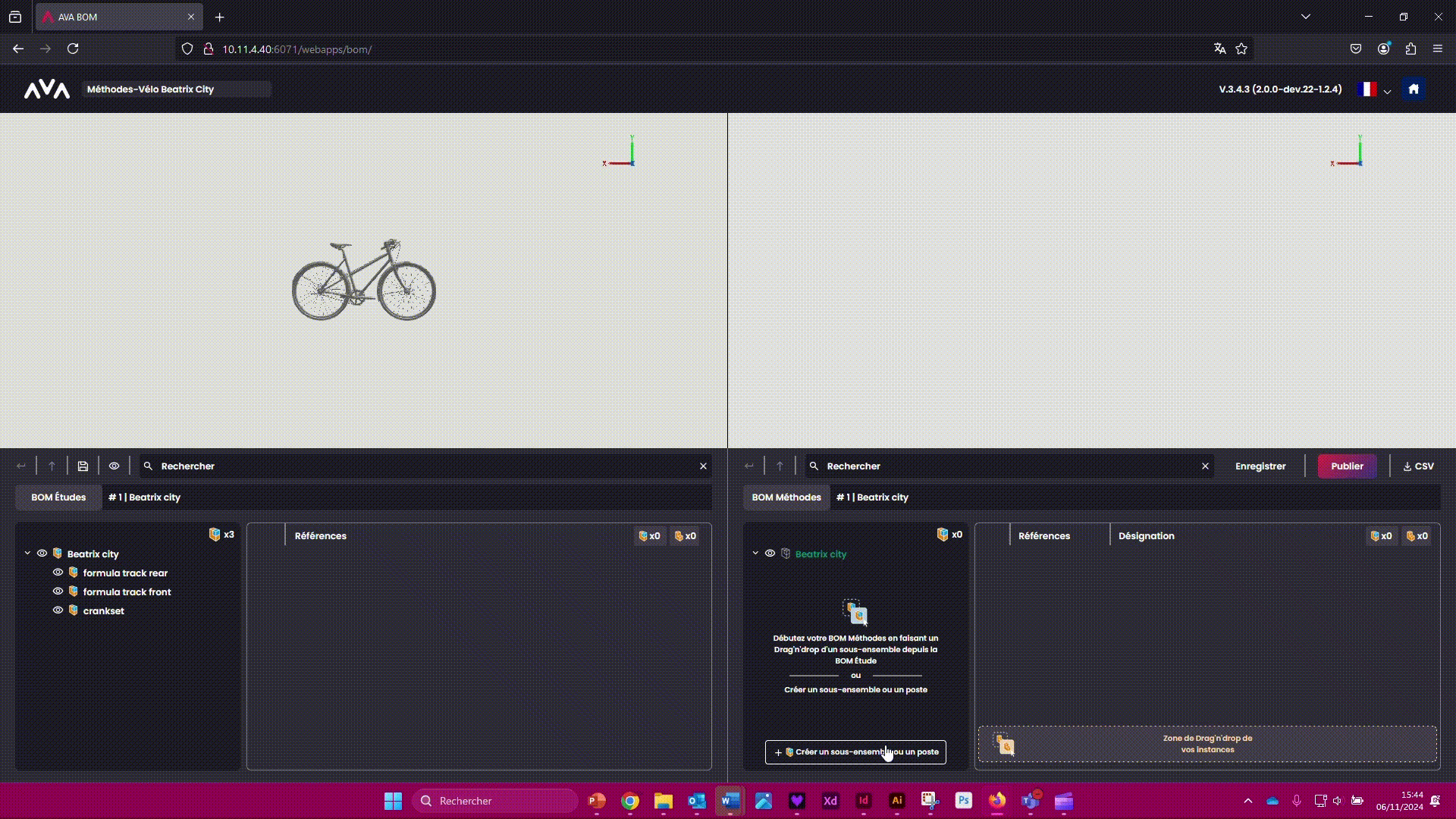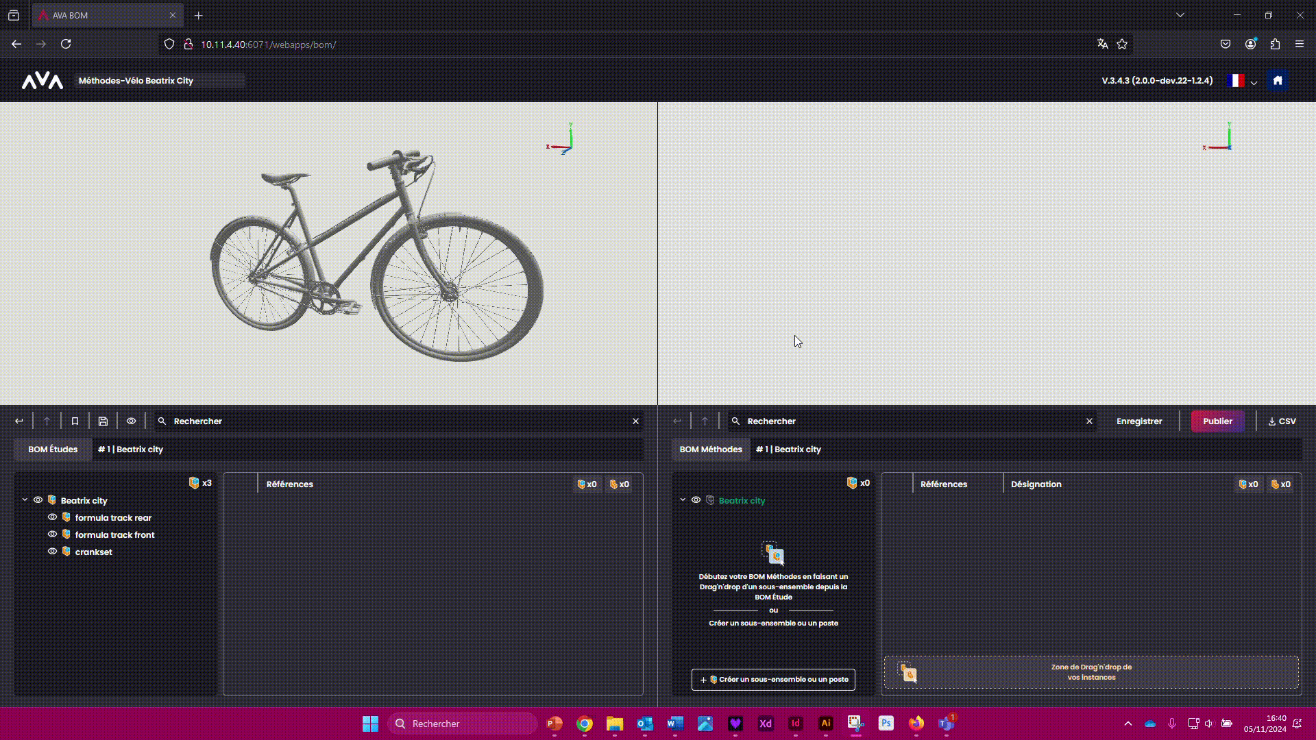 Vous êtes prêt à passer sur AVA OP pour créer votre gamme d'assemblage en 3D avec votre BOM Méthodes !