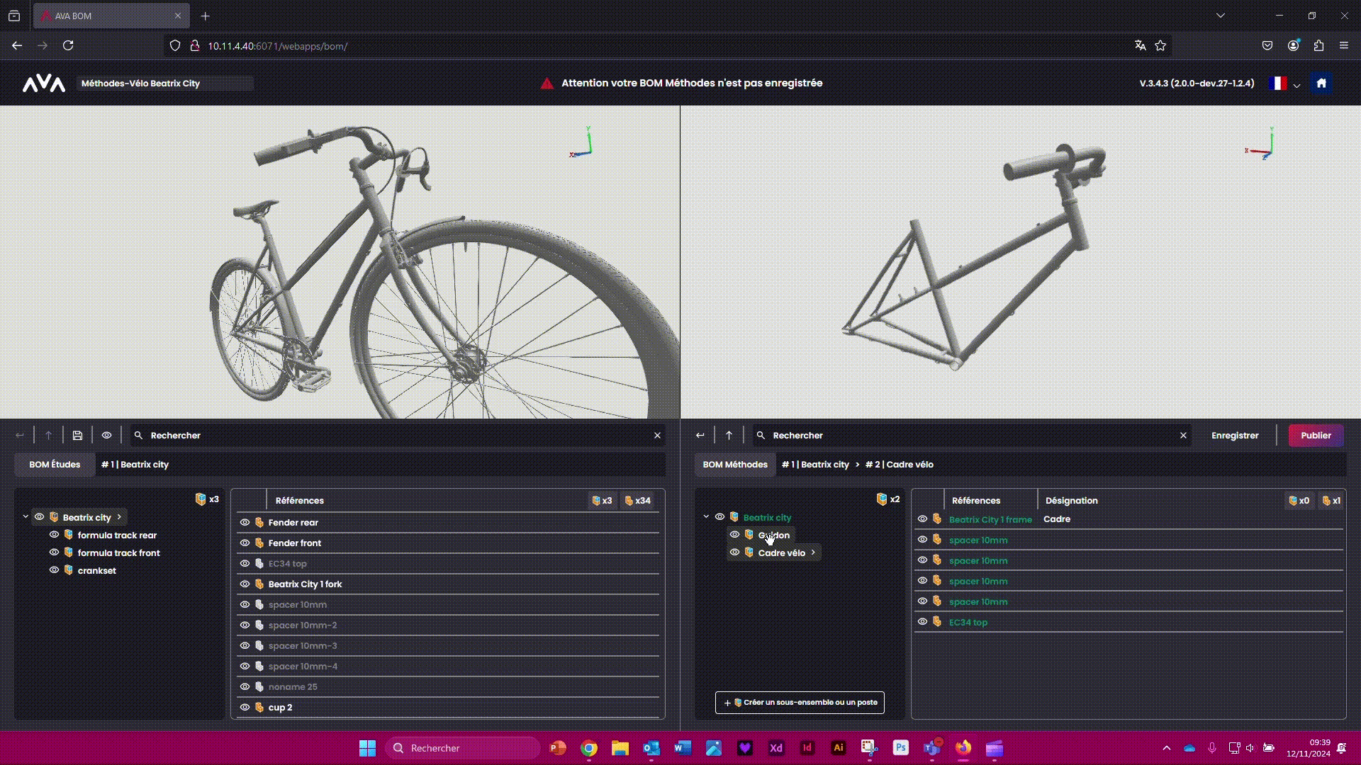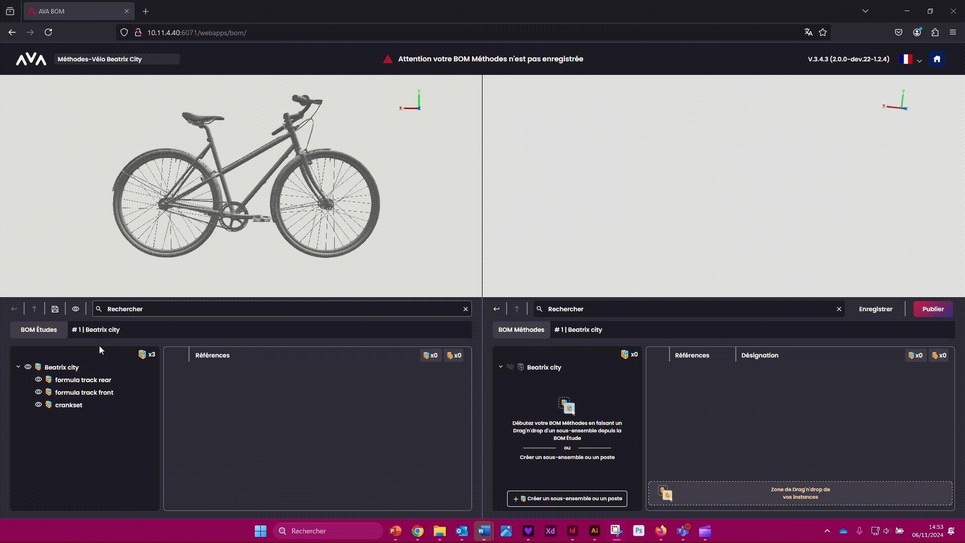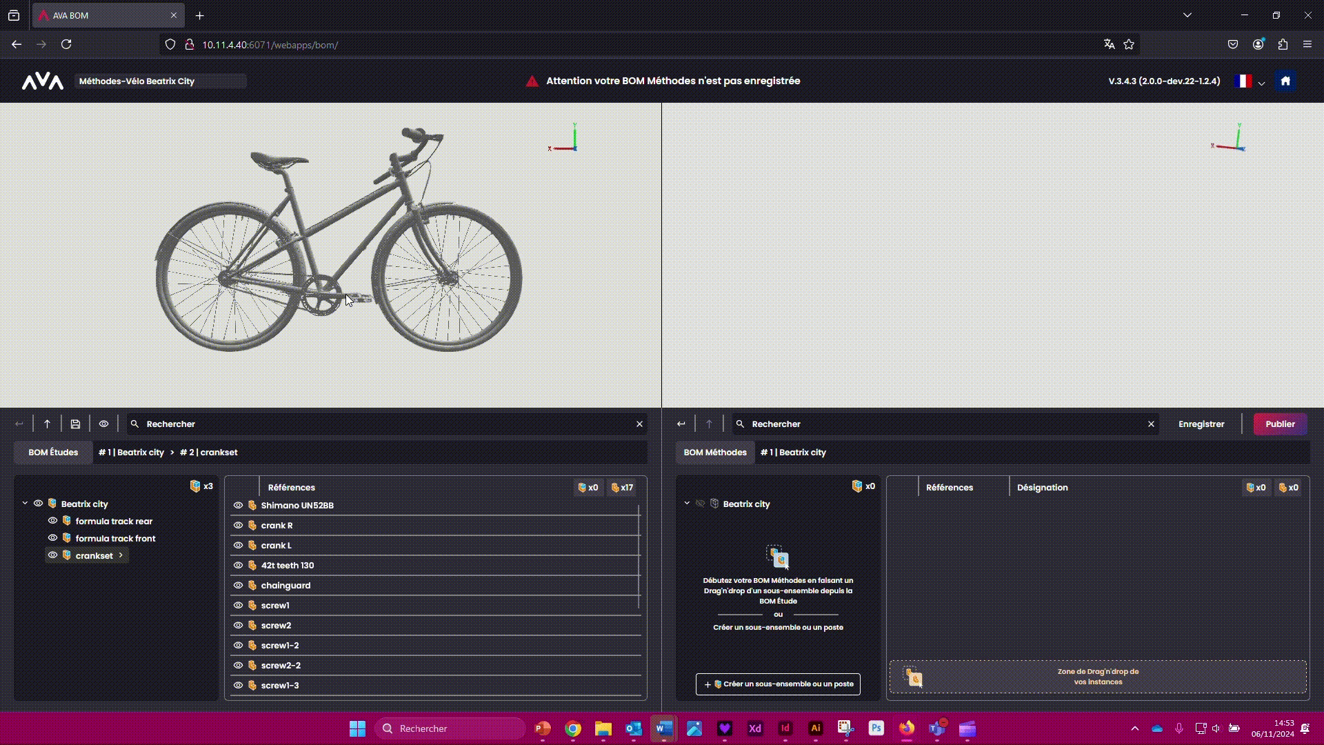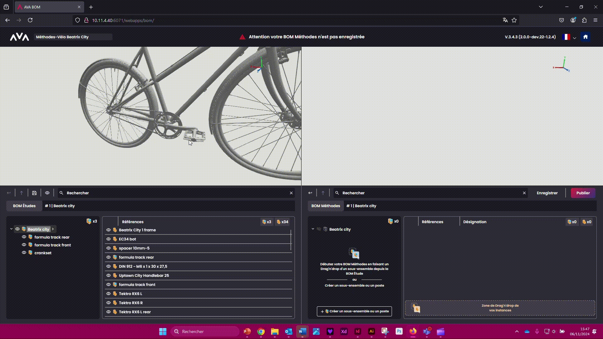 Vous êtes prêt à passer sur AVA OP pour créer votre gamme d'assemblage en 3D avec votre BOM Méthodes !